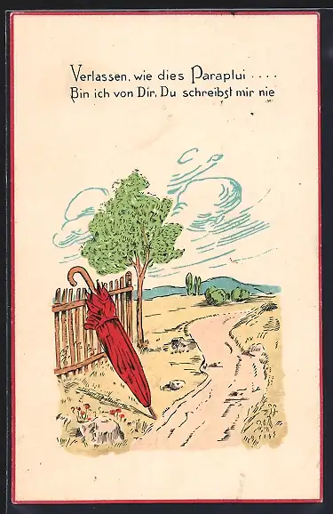 AK Regenschirm an einem Zaun, Rebus