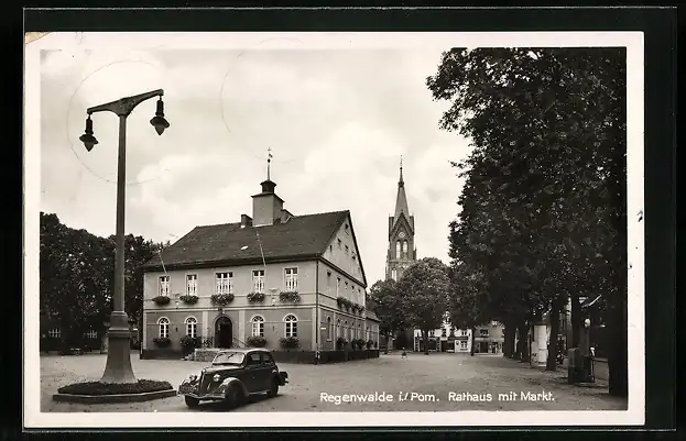 AK Regenwalde i. Pom., Rathaus mit Markt