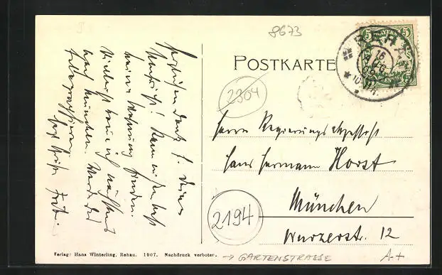 alte Ansichtskarte, gelaufen 1909, guter Zustand