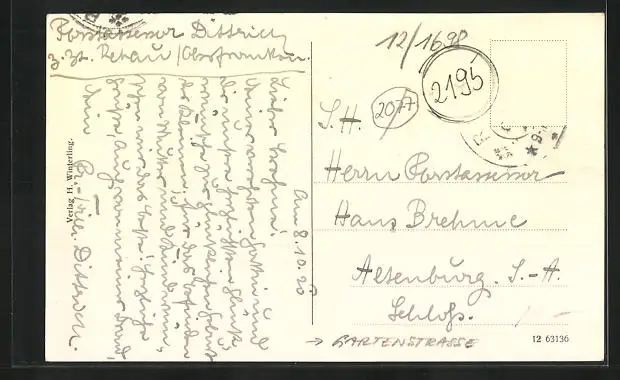 alte Ansichtskarte, gelaufen 1920, Briefmarke entfernt, guter Zustand