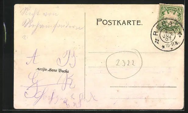 alte Ansichtskarte, gelaufen 1907, Eckknick re. unten, guter Zustand