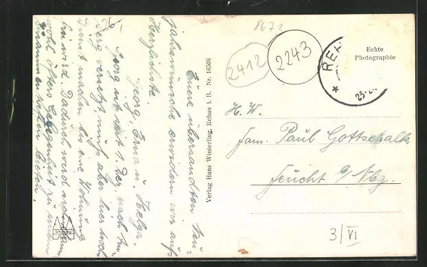 alte Ansichtskarte, gelaufen, Briefmarke entfernt, guter Zustand