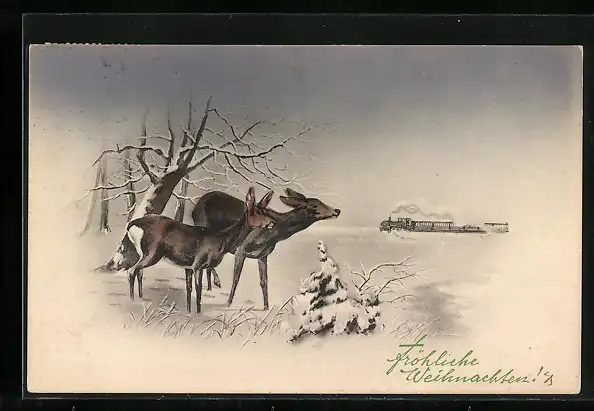 AK Rehe am Waldrand blicken auf eine Eisenbahn