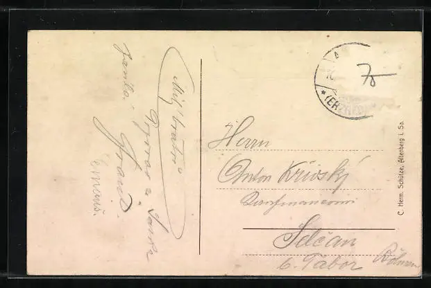alte Ansichtskarte, gelaufen, Briefmarke entfernt, rückseitig Oberflächenschaden, minimaler Einriss li. oben, guter Zustand