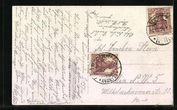 gelaufen 1920, Einrisse unten li. und mittig oben, Eckknicke li., guter Zustand