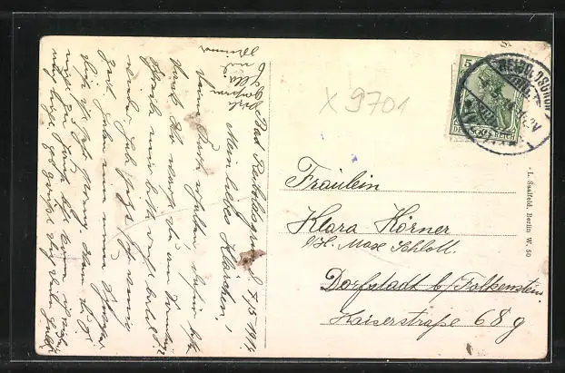 gelaufen 1914, Eckknick rechts unten, Ecken bestoßen, Stempelspur, sonst guter Zustand