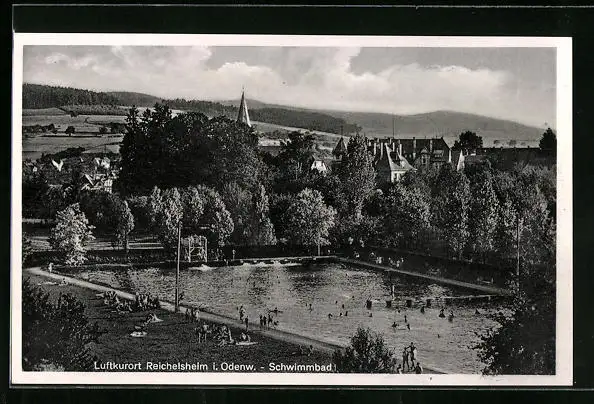 AK Reichelsheim i. Odenw., Schwimmbad mit Stadtblick