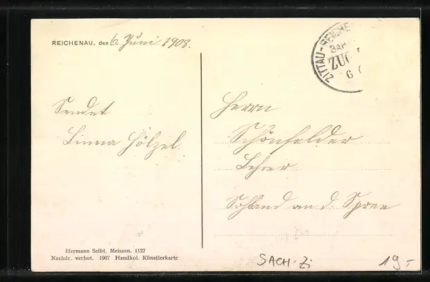 alte Ansichtskarte, gelaufen, Briefmarke entfernt, guter Zustand