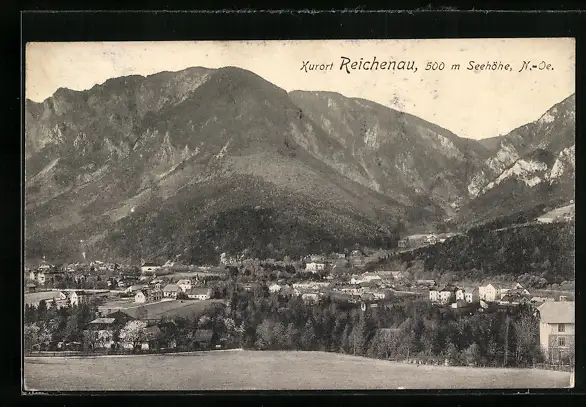AK Reichenau, Ortsansicht mit Bergpanorama