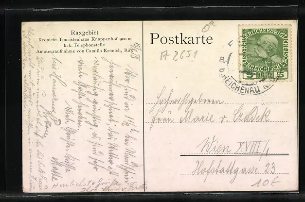 AK Reichenau / Rax, Kronichs Touristenhaus Knappenhof