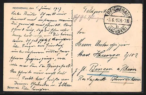 alte Ansichtskarte, gelaufen 1917, Stempelspur, guter Zustand