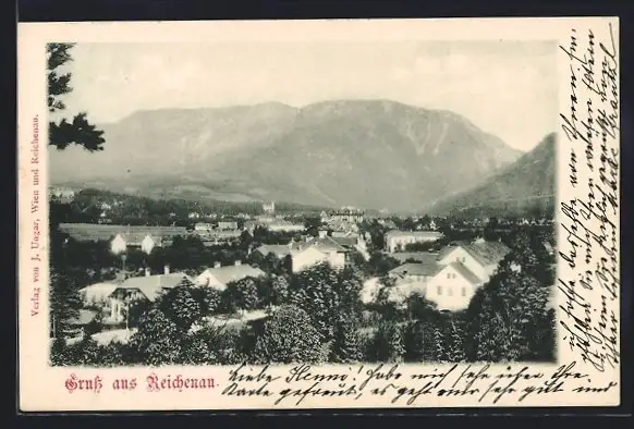 AK Reichenau, Teilansicht mit Bergen