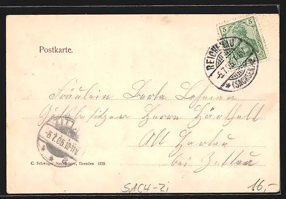 alte Ansichtskarte, gelaufen 1905, Eckknick re. unten, guter Zustand