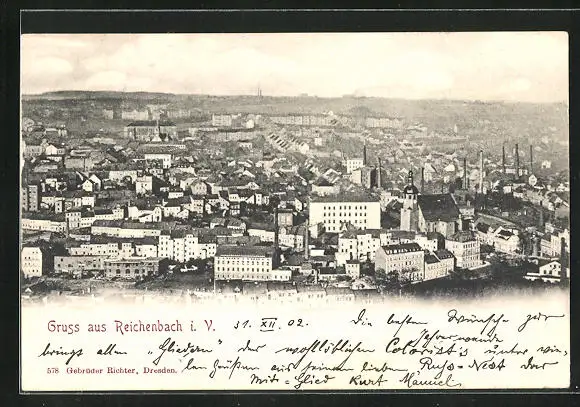 AK Reichenbach i. V., Gesamtansicht aus der Vogelschau