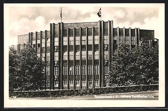 AK Reichenbach i. V., Höhere Textilfachschule, Flaggen mit