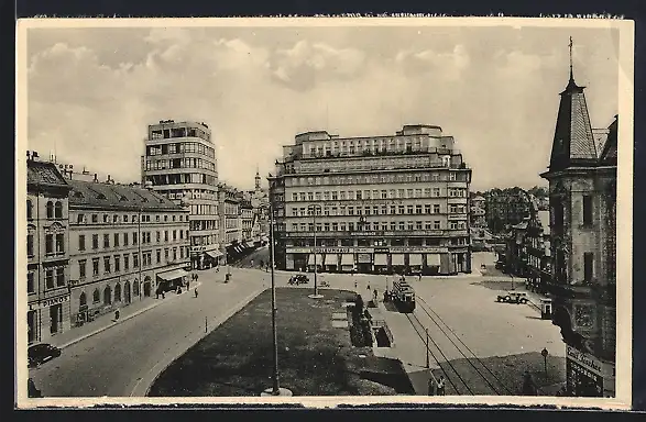 AK Reichenberg, Tuchplatz mit Strassenbahn
