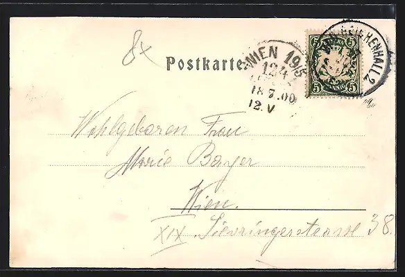 alte Ansichtskarte, gelaufen 1900, Stempelspur, guter Zustand