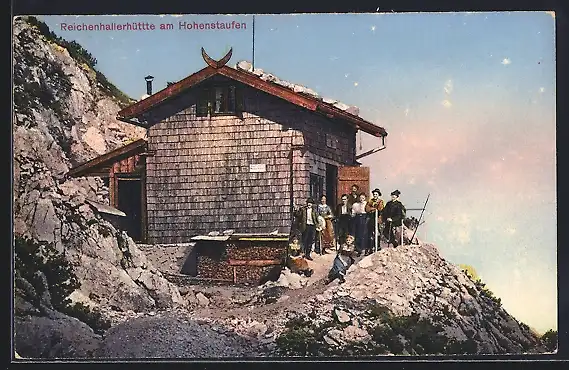AK Reichenhallerhütte am Hohenstaufen, Motiv mit Gästen