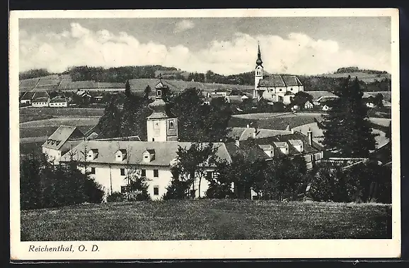 AK Reichenthal, Ortsansicht mit Kirche aus der Vogelschau