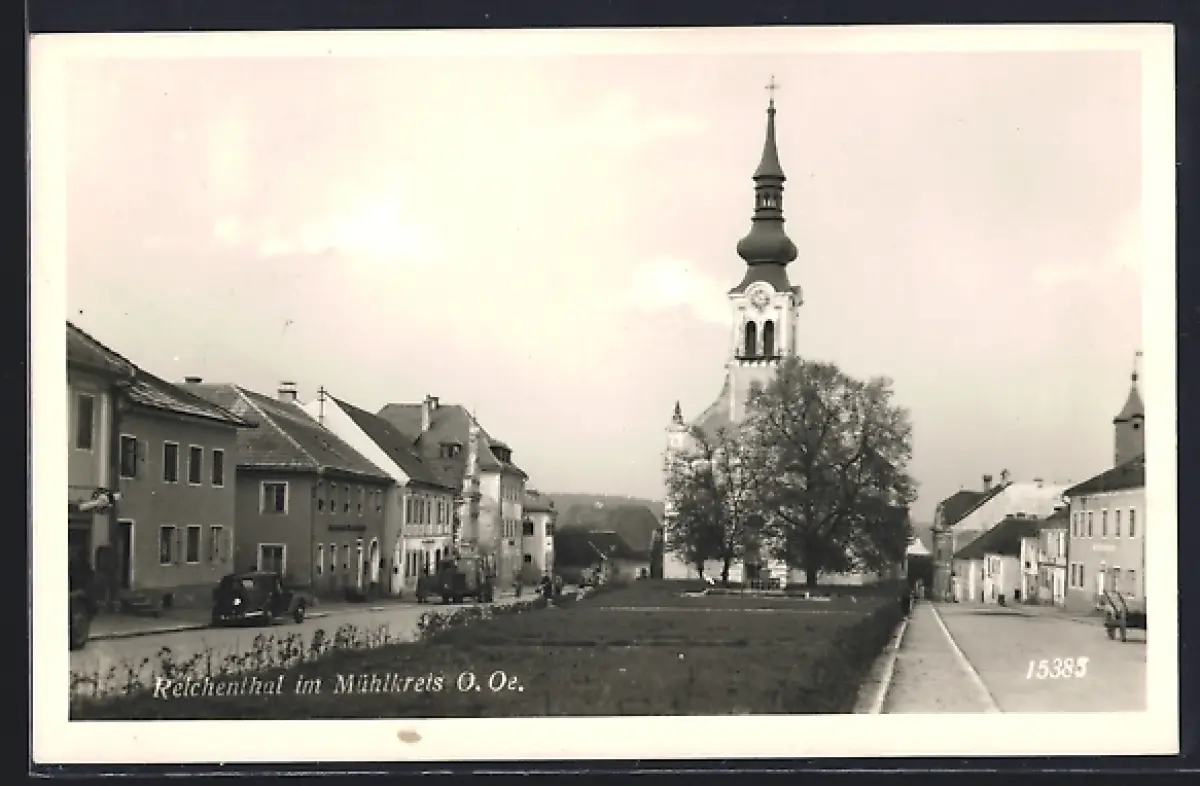 AK Reichenthal im Mühlkreis, Platzpartie mit Anlage u. Kirche