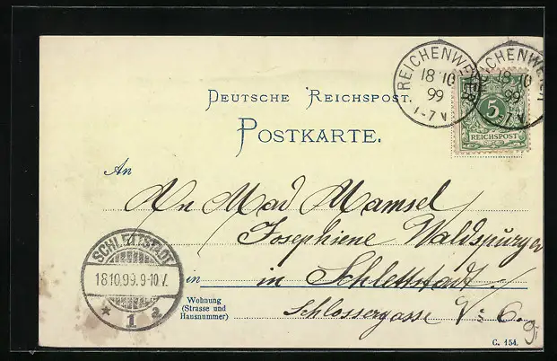 alte Ansichtskarte, gelaufen 1899, Stempelspur, Kanten beschnitten