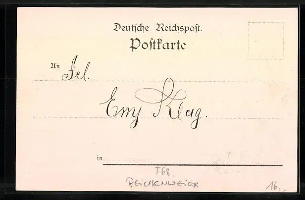 Personenbezogene Daten auf der Rückseite der Karte wurden durch blauen Textmarker unkenntlich gemacht. Die blauen Stellen sind auf die Vorderseite durchgeweicht und wirken sich negativ auf das Postkartenfoto aus