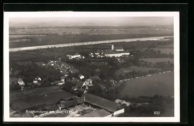 AK Reichersberg am Inn, Gesamtansicht mit Inn aus der Vogelschau