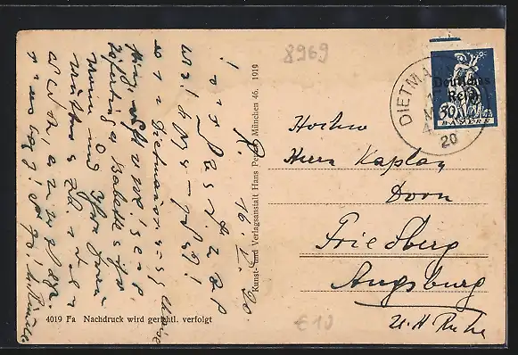 alte Ansichtskarte, gelaufen 1920, Eckknick unten li., guter Zustand