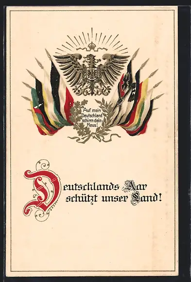 AK Reichsadler mit Fahnen der deutschen Länder