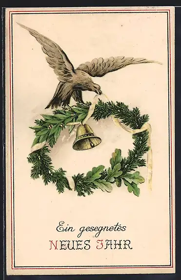 AK Reichsadler mit Kranz und Glocke, Neujahrsgruss