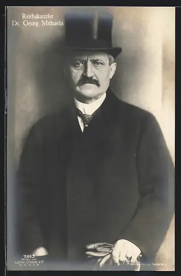 AK Reichskanzler Dr. Georg Michaelis, Portrait mit Zylinderhut