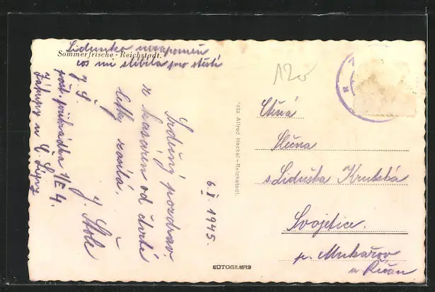 gelaufen 1945, Briefmarke entfernt, sonst guter Zustand