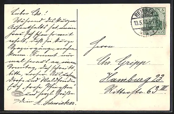 alte Ansichtskarte, gelaufen 1910, guter Zustand