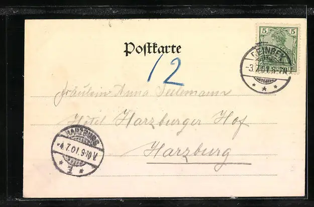 alte Ansichtskarte, gelaufen 1901, Bugspur re. oben, guter Zustand