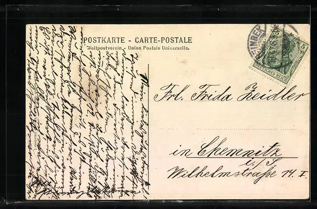 alte Ansichtskarte, gelaufen 1908, Eckknick li. oben, Stempelspur, guter Zustand