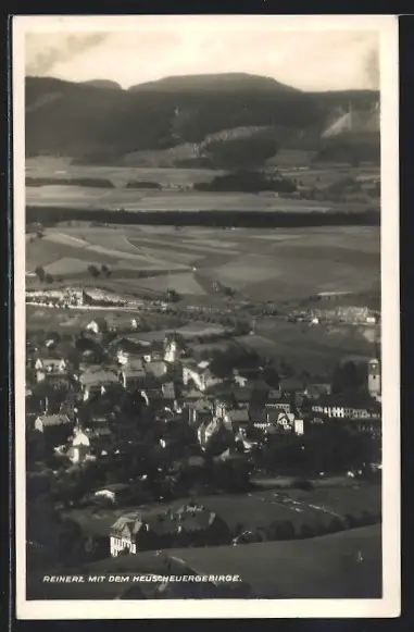 AK Reinerz, Ortsansicht mit dem Heuscheuergebirge