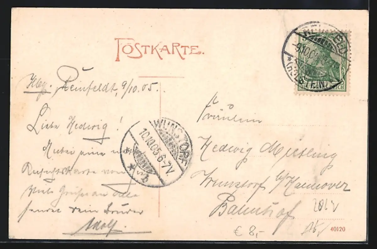 alte Ansichtskarte, gelaufen 1905, guter Zustand