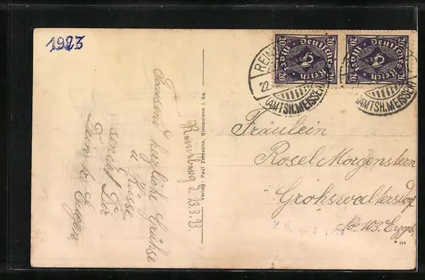 alte Ansichtskarte, gelaufen 1923, Eckknick li. unten, Einriss unten mittig, guter Zustand