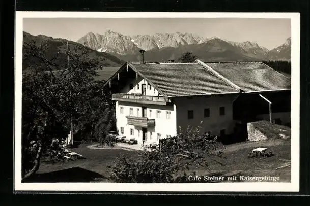 AK Reit im Winkel, Cafe Steiner mit Kaisergebirge