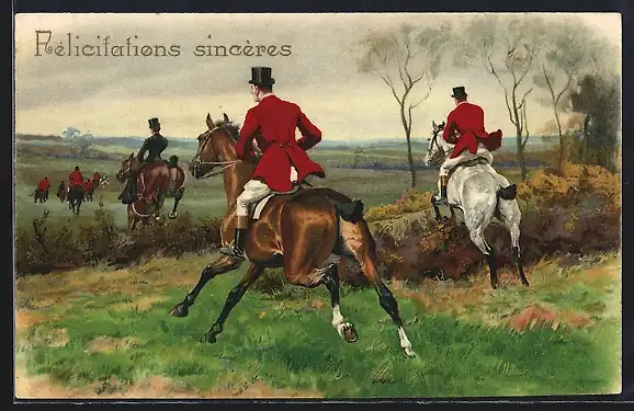 AK Reiter setzen über eine Hecke bei der Parforcejagd