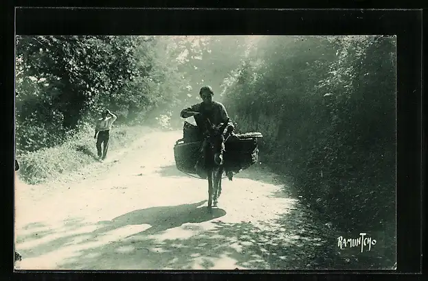 AK Reiterin auf Lastesel in den Pyrenäen