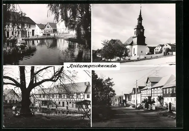 AK Reitzengeschwenda, Kirche, Uferpartie, Strassenpartie