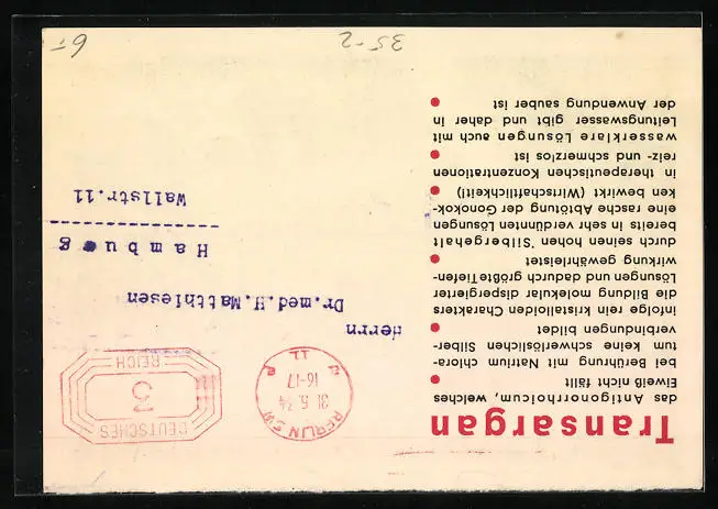 AK Reklame Transargan, Chemische Fabrik Tempelhof AG Berlin