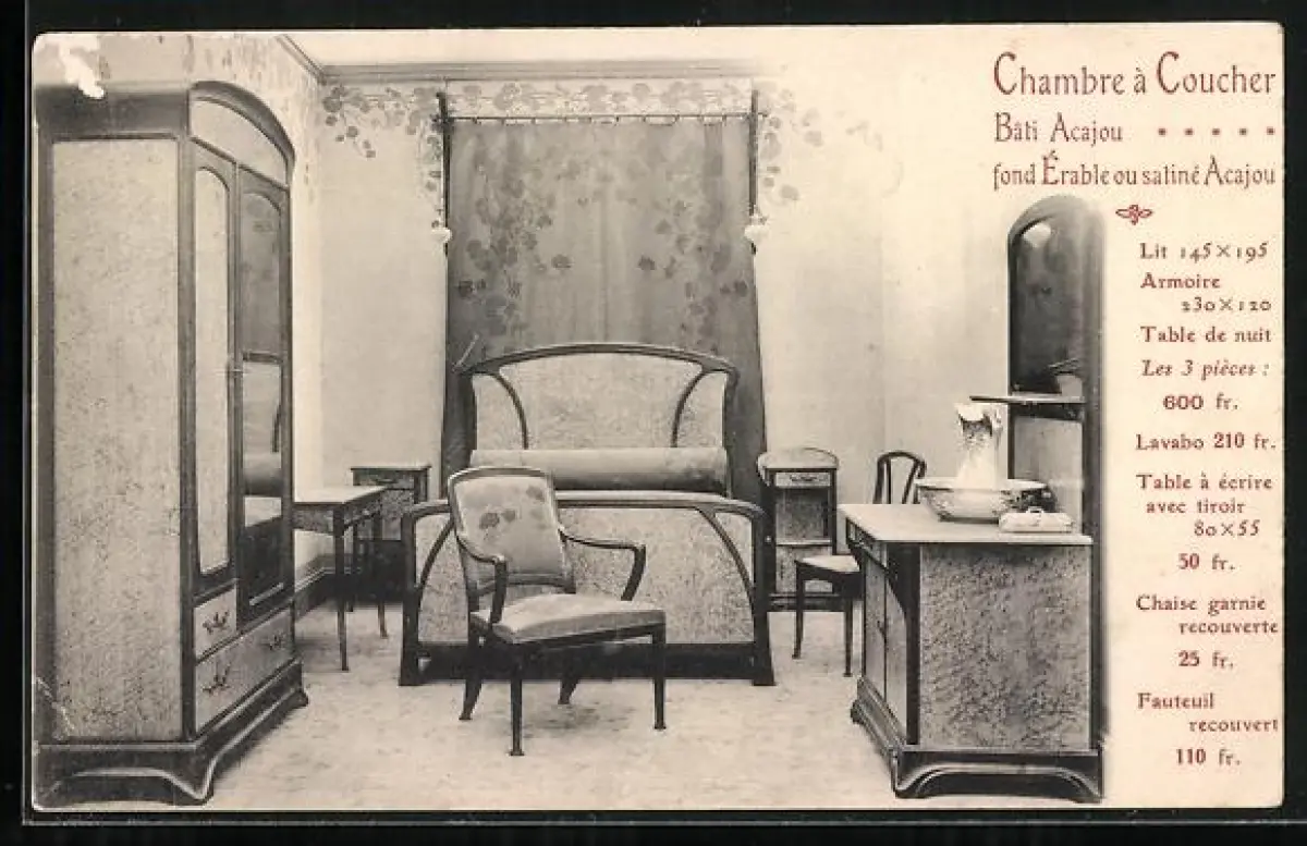 AK Reklame für Möbel, Chambre à Coucher, mit Preisliste