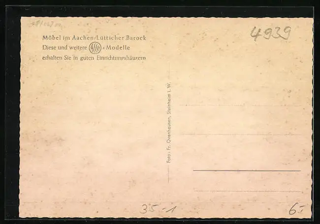 AK Reklame für Möbel im Aachen-Lütticher Barock