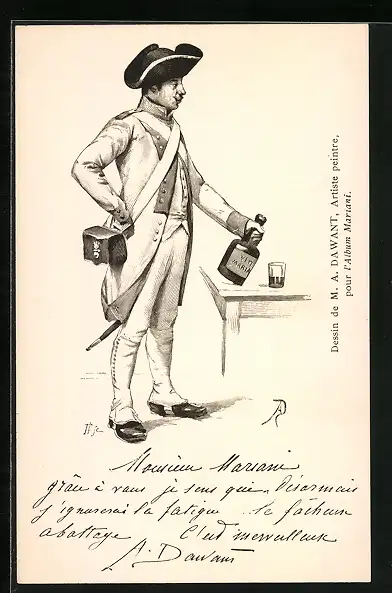 AK Reklame für Wein Mariani, Soldat in Uniform