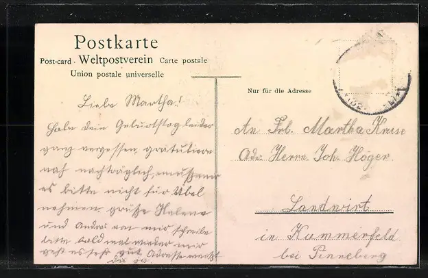alte Ansichtskarte, gelaufen, Briefmarke entfernt, rückseitig Oberflächenschaden, guter Zustand