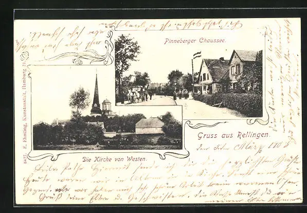 AK Rellingen, Pinneberger Chaussee, Kirche von Westen