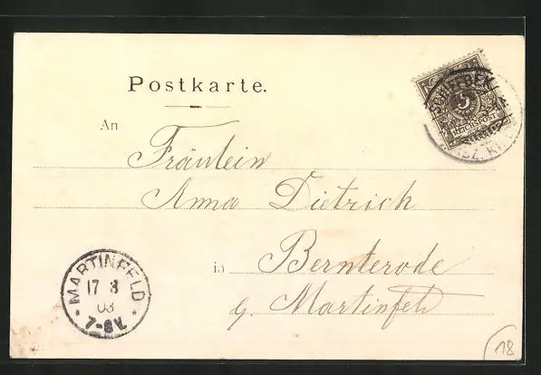 alte Ansichtskarte, gelaufen 1903, guter Zustand