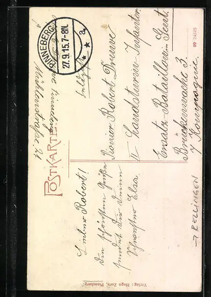 alte Ansichtskarte, gelaufen 1915 als Feldpost, guter Zustand